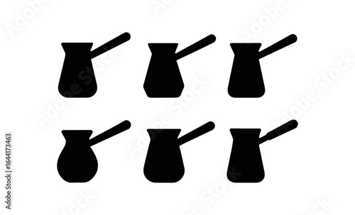 Minimalist coffee icon set featuring cups, beans, pots, and tools