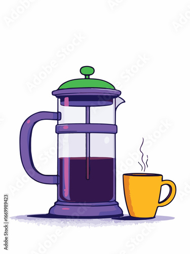 White ceramic cup filled with rich brown coffee featuring latte art heart design style vector illustration EPS file download