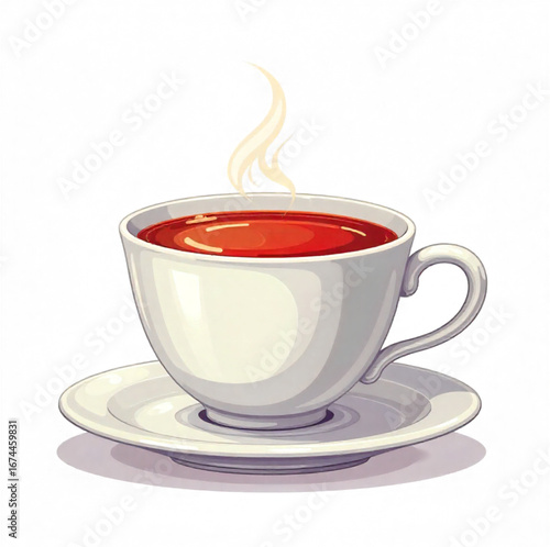 Very Simple flat 2D icon cup of tea with tea leaf isolated on a white background, vector, flat design, animation design, simple flat 2D icon, minimalist design, clipart