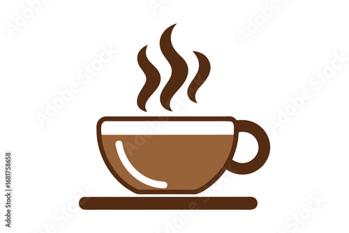 Flat vector logo of a steaming coffee cup simplified into smooth curves