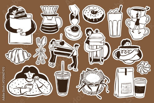 Loose Ink Coffee Cup Doodles for Cozy Café Branding