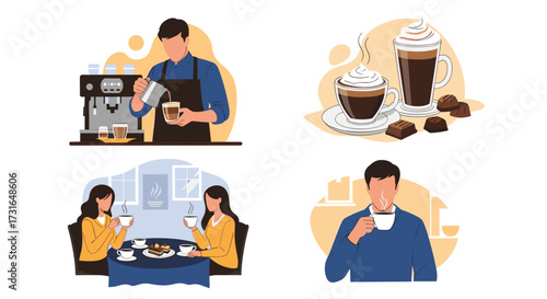Artistic Coffee Beverage Collection Espresso Latte Art and Fresh Beans