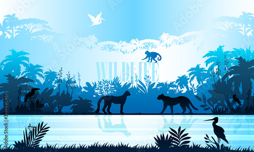 abstract palm silhouette summer background with central copy space