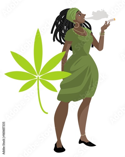 Animation portrait of the young beautiful African woman  in a dreadlocks. Color drawing. Vector illustration isolated on a white background. Print, poster, t-shirt, card.