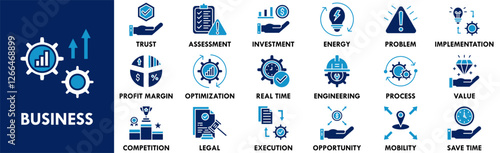 Business and Finance Icons A Collection of Icons Representing Financial Growth and Business Operations