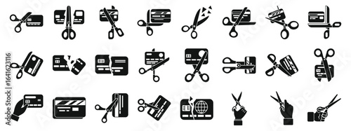 Such as Bankruptcy icons. Cut Card, Financial Crime, Seizure, Shop, Broken Bank, Unaffordable House, Money Waste, Sink, Calculator, House For Sale, Bankruptcy vector illustration.