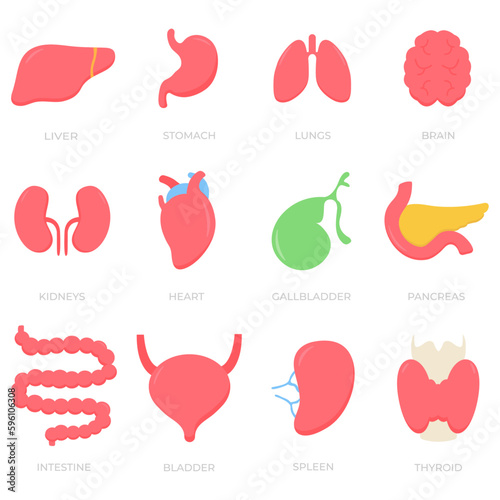 Liver icon set. Human internal organ anatomy. Vector illustration.