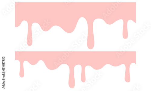 Pink ice cream drip icon. Vector illustration. Set of isolated pink liquid drops and melting glaze shapes. Sweet dessert fluid symbol in dripping style.