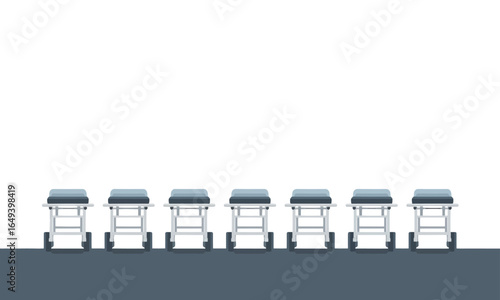 Flat vector illustration of an empty hospital bed or medical gurney, isolated on a white background. Concept for healthcare, clinic, and patient treatment.