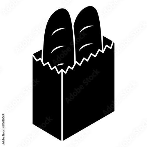 Simplistic illustration of bread. Black outline, black dots, isolated on white.