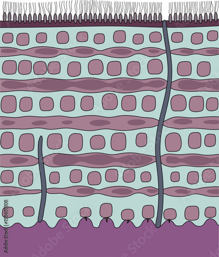 Earthworm epidermis structure diagram with mucous cells secrete mucus for biology lessons