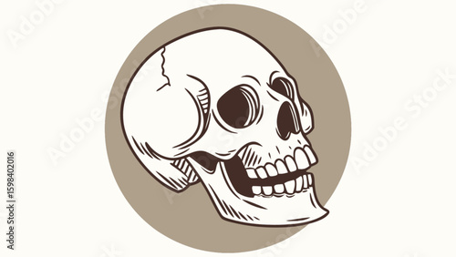 Human Skull Anatomy Illustration Showing Front and Side Views Perfect for Educational Materials and Halloween Themes Detailed Boney Structure