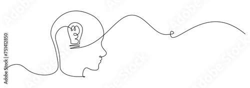 Continuous one line drawing of electric light bulb. Concept of idea emergence. Vector illustration.