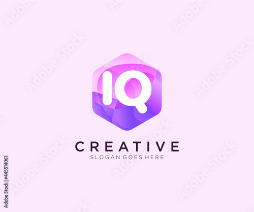 IQ logo hexagon designs, best monogram initial logo with hexagonal shape design ideas