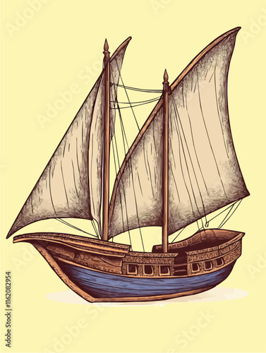 Vector illustration sketch vintage classic old traditional ethnic sailing ship detail design drawing