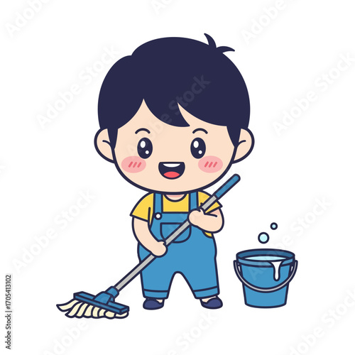 Mop and Bucket Vector Art. Clean Design in Line Art Style
