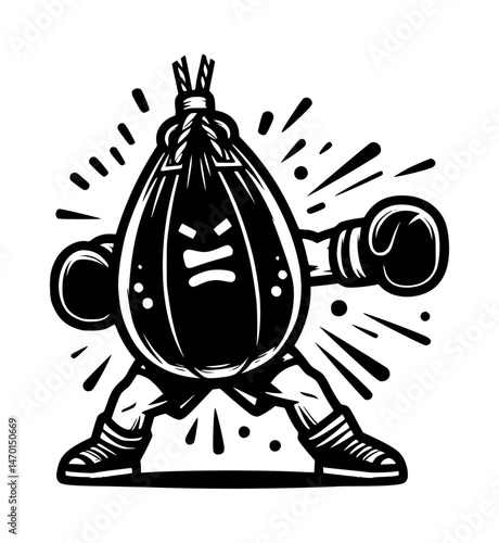 Bald Eagle in muay thai costume. Boxing Sport Cartoon Animal Clipart Line Art Vector Illustration. American raptor wearing attire for combat sport avian martial artist.