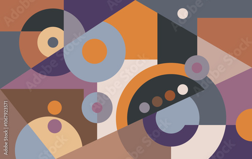 Abstract Geometric Pattern Artwork. Retro colors and color background. Grid with colored geometric shapes. Modern abstract promotional flyer, background, brochure, pattern.