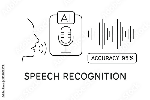 A collection of AI-themed icons including neural networks, robotic arms, light bulb, and gears in minimalist outline vector style, ideal for technology and innovation projects