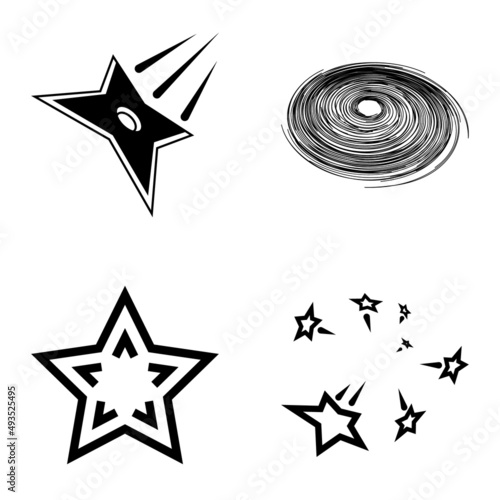 Illustration of ninja stars, ninja and weapon, cartoon vector