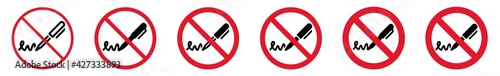 Screwdriver ban sign. Screwdriver is forbidden. Set of red prohibition signs of screwdriver. Vector illustration