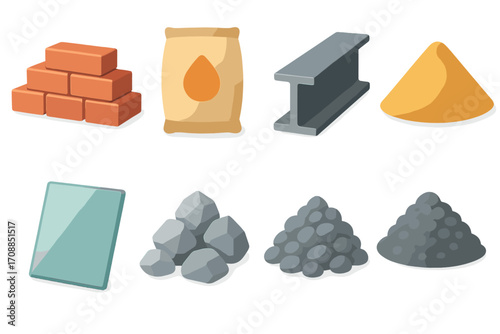 Silhouettes of Construction Workers and Equipment Including Shovels, Wheelbarrows, Bulldozers, and Excavators for Industrial Design Illustration