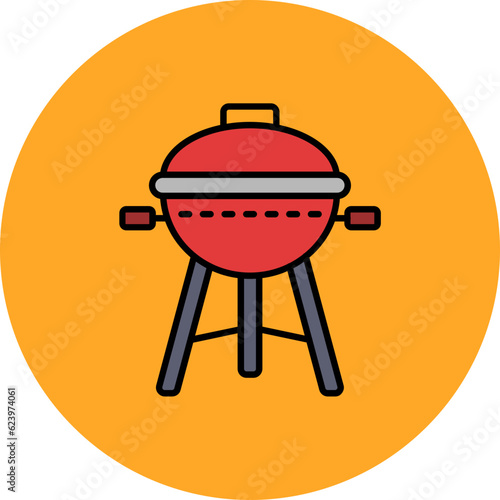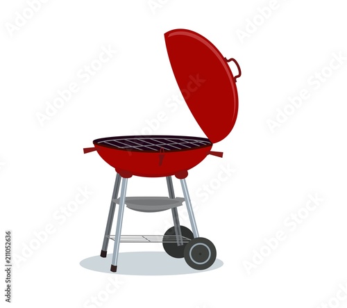 Round barbecue grill. Bbq icon. Electric grill. Device for frying food. Vector illustration in flat style