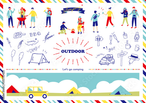 バナーなどに使えるアウトドアイラストフレームセット1(文字あり)