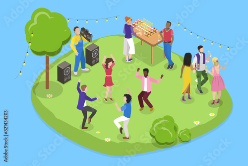 3D Isometric Flat Vector Illustration of Park Fun Party, Outdoor Entertainment