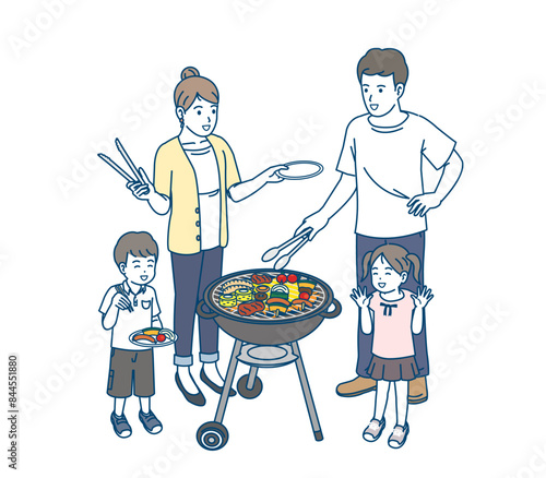 Barbeque grill line art. Vector illustration with spring season theme and line art style.