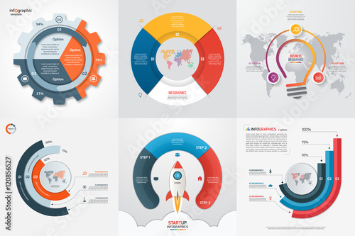 Colorful infographic with three circular elements arranged horizontally. Vector circles are labeled with 3 steps and options.