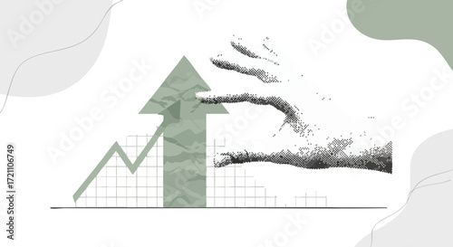 Illustration of a hand reaching towards an upward trending arrow, symbolizing growth and progress.