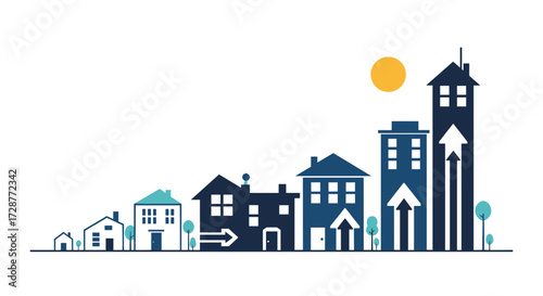 Visualizing the upward trend of urban development and economic growth over time.