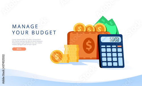 Cute cartoon wallet with money in vector illustration. Isolated object vector. Flat cartoon style
