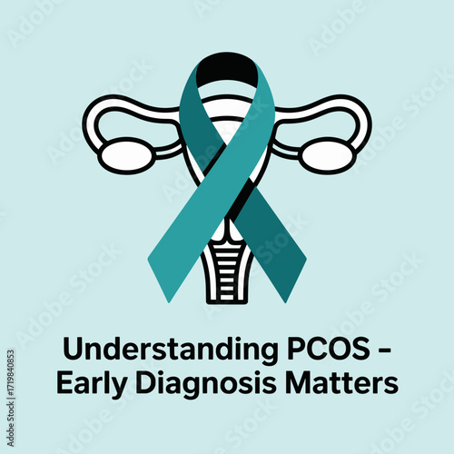 Polycystic Ovary Syndrome (PCOS) Awareness Month is observed every year in September. Teal awareness ribbon and uterus icon. Template for background, banner, card. Important day. Vector illustration