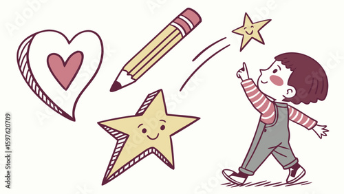 Heart shape surrounded by colorful pencils and crayons