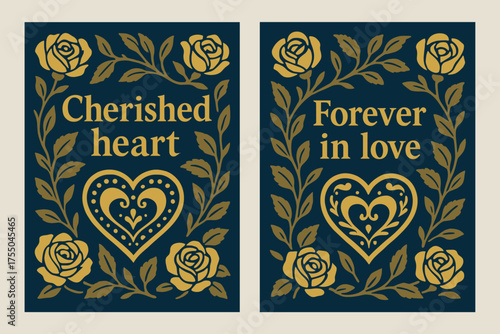 Elegant Valentine Banners. Valentine. Two vertical A6 banners with safe margins, centered composition, no elements touching edges, modern minimal, navy and