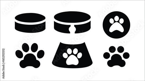 Dog silhouettes collection, pet animal icons, cute cartoon cat, domestic animals illustration, black dog shapes, vector pet design, animal silhouette set
