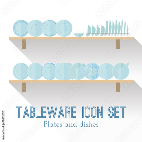 Flat set of different icons plates