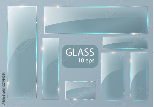 Glass plates are installed. Vector glass banners on a transparent background. Glass. Glass paintings. Color frames