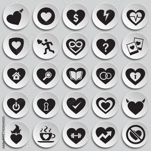 Heart icon set on plates background for graphic and web design, Modern simple vector sign. Internet concept. Trendy symbol for website design web button or mobile app