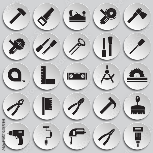 Tools icons set on plates background for graphic and web design, Modern simple vector sign. Internet concept. Trendy symbol for website design web button or mobile app