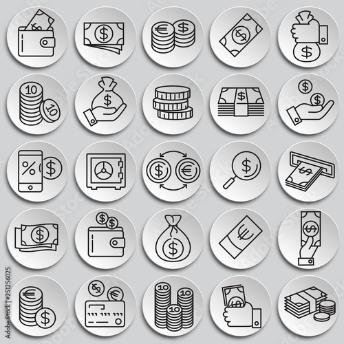 Money line icons set on plates background for graphic and web design, Modern simple vector sign. Internet concept. Trendy symbol for website design web button or mobile app