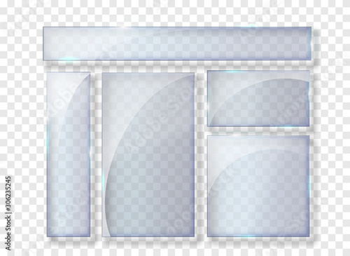 Glass plates set. Glass banners on transparent background. Flat glass clear window. Vector illustration