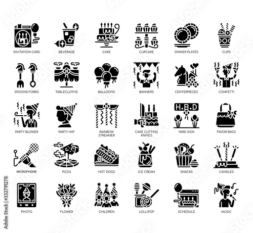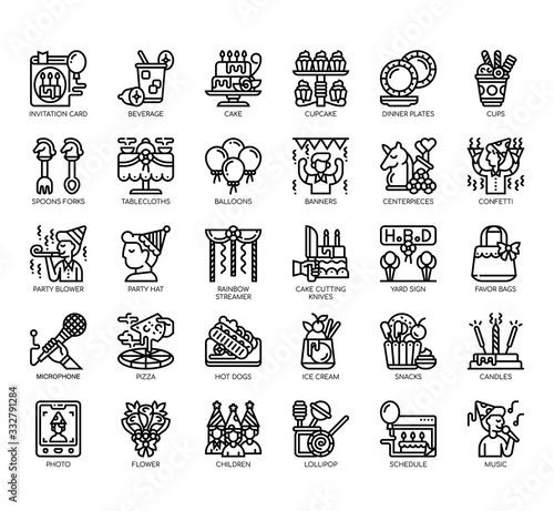 Set of birthday party thin line and pixel perfect icons for any web and app project.