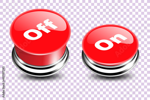 Power off and power on button in 3d style. Red switches buttons. Vector illustration.