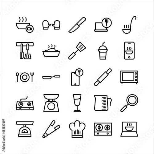 Kitchen icon set vector line for website, mobile app, presentation, social media.