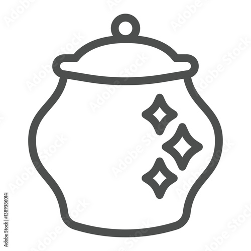 Lacquered pot with lid line icon, pottery concept. Vector graphics. Polished pot sign on white background, outline style icon for mobile or web design.