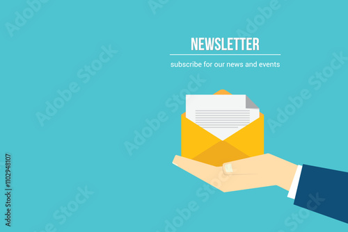 Newsletter. vector illustration of email marketing. subscription to newsletter, news, offers, promotions. a letter and envelope. subscribe, submit. send by mail.
