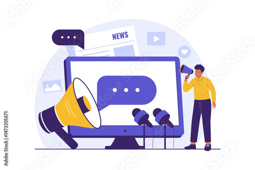 Illustration of Media Opinion and Public Communication in Digital Journalism. Illustrations for websites, landing pages, mobile apps, posters and banners